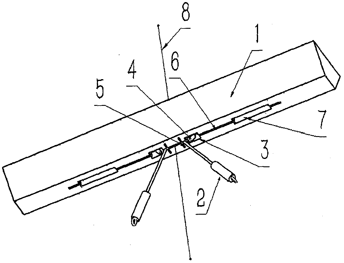 5.如权利要求1所述的一种防止船舶颠覆的应急装置,其特征在于:所述油泵拉轴装置(4)控制重力平衡锤(2),在转动垂放时,两个对应重力平衡锤(2)都对称同步,与船底平面的倾斜沉底角度(11)相等,始终保持船舶静态重力中心线(8)的位置不变。