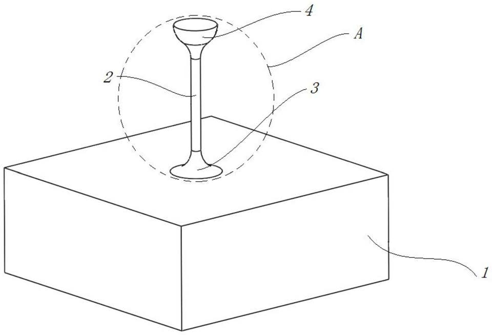 标距部分(2),其设置为直径为微米级、长度为毫米级的圆柱体,且其轴线垂直于所述下夹持端(1)的上表面;