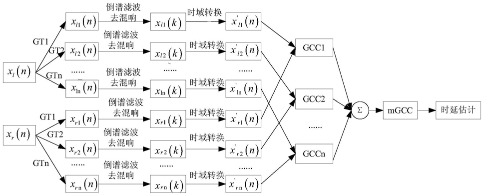S4:步骤S3得到的去混响的左右耳各子带信号采用改进的广义互相关时延估计方法求取双耳时间差,所述改进广义互相关时延估计方法主要包括:在传统广义互相关法的基础上采用改进的相位加权MPHAT;