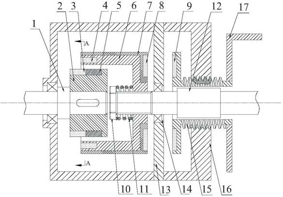 在上述的动力输入轴的最左端设置有弹簧,弹簧的左右两端分别与螺帽和外转子的左端面接触挤压;
