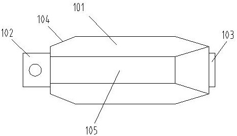 所述固定部(102)为正四棱柱状,且固定部的四个侧面与棒体(101)的四个平面连接面(105)分别平行;所述棒体(101)上每一个侧面的两端形成分别朝向棒体(101)端部中心倾斜的坡面(104)。