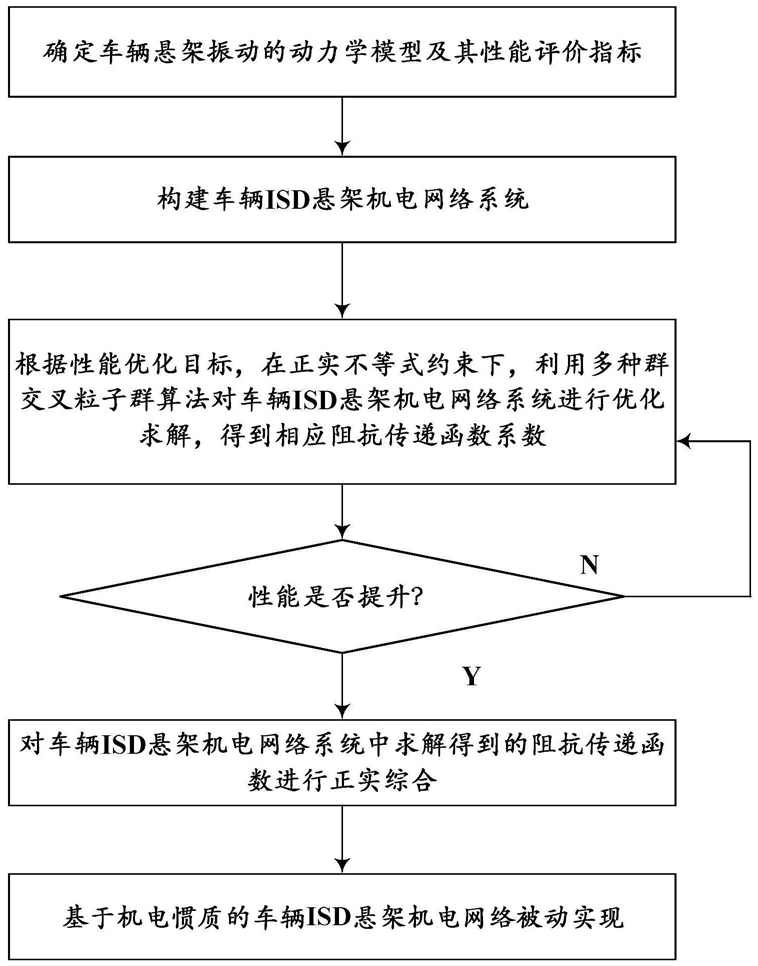 1.一种车辆ISD悬架机电网络系统正实综合与被动实现方法,其特征在于,主要包含如下步骤:步骤一:确定车辆悬架振动的动力学模型及其性能评价指标;