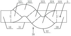 所述第一弯曲段与第四弯曲段形状相同,放置方向相反;其中,0<θ1<π,0<θ2<π。