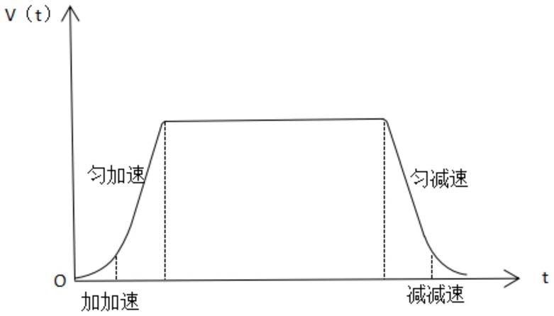 类S型的五段速度分别为加加速段、匀加速段、匀速段、匀减速段、减减速段,结合加速度表和电机转动的物理特性得到相应的阶梯步长表;