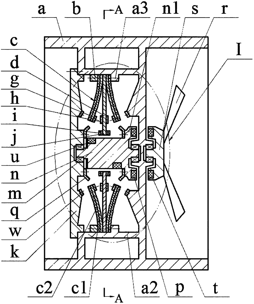 1.一种用于河流监测的间接激励式压电俘能器,其特征在于:外筒内部经筋板安装有内壳,内壳由圆筒形的侧壁与其右侧的底壁构成,内壳的端口朝左,内壳的侧壁上的凸台经螺钉和压环均布地安装有压电振子和激励簧片,激励簧片两侧的压电振子数量相等且对称布置;压电振子由金属基板与其一侧的压电晶片粘接而成,金属基板靠近激励簧片安装;压电振子的自由端安装有被悬浮磁铁,激励簧片的自由端两侧安装有悬浮磁铁、调频质量块和受激磁铁,悬浮磁铁与被悬浮磁铁相对安装且安装在自由端靠近端部的位置,调频质量块和受激磁铁安装在激励簧片的自由端的端部且受激磁铁安装在靠近基板的一侧,被悬浮磁铁与悬浮磁铁的同性磁极相对安装;内壳由圆筒形的侧壁与其右侧的底壁构成,内壳的端口朝左,内壳的侧壁的左侧端口处安装有端盖,端盖和内壳的底壁斜凸台上安装有限位磁铁,限位磁铁与被悬浮磁铁的同性磁极相对安装;端盖的底壁右侧及内壳的底壁两侧的沉孔中分别镶嵌有轴承;端盖上与内壳底壁左侧的轴承中安装有滚筒,滚筒的两个不同的轴截面上都均布地镶嵌有激励磁铁,两个截面上的激励磁铁相对激励簧片的中心对称布置,激励磁铁的磁极沿滚筒的径向布置,激励磁铁与受激磁铁的异性磁极相对安装;滚筒的右侧设有滚盘,滚盘的右端面上均布地镶嵌有被驱磁铁;滚盘的左侧端面及端盖的底壁安装有缓冲簧片,缓冲簧片位于滚筒外侧且置于受激磁铁的运动路径上;内壳右侧的轴承内圈中安装有带叶片的轴套,轴套的左端面上均布地镶嵌有驱动磁铁,驱动磁铁与被驱磁铁几何中心的回转半径相同且异性磁极相对安装;压电振子安装前为平直结构、安装后由于磁力作用变为弯曲结构;激励簧片不发生弯曲变形时,激励簧片两侧压电振子的变形及受力状态分别相同;当利用外力使压电振子与限位磁铁相接触时,压电晶片上的最大压应力小于其许用压应力、压电振子端部的弯曲变形量不大于许用值