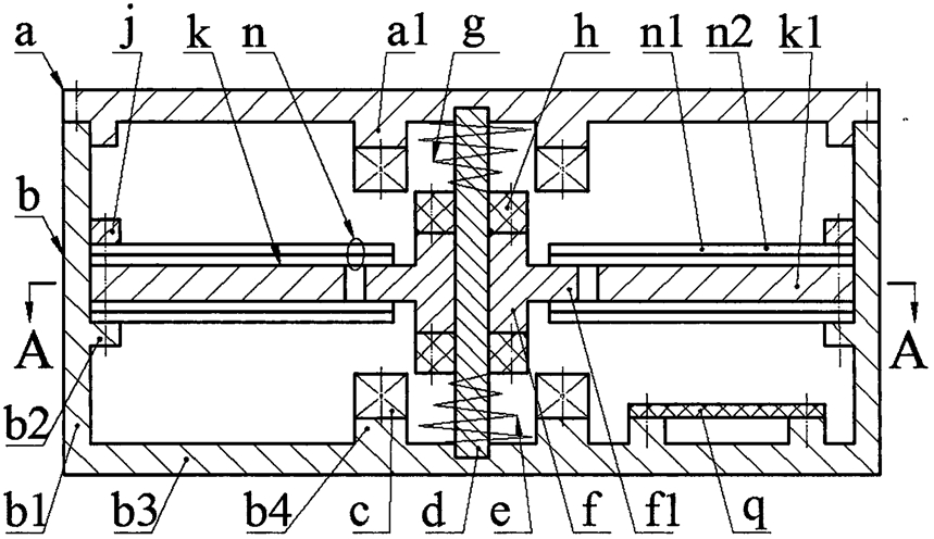 1.一种船载定位跟踪系统用自供电装置,其特征在于:上盖装在壳体的筒壁端部,筒壁上设有筒壁凸台;上盖的凸台及壳体底壁的凸台上都装有线圈;导柱两端分别固定在上盖和壳体底壁上,导柱自下而上依次套有平衡弹簧、惯性块和限位弹簧,平衡弹簧和限位弹簧为碟形弹簧,惯性块侧边设有翼板,惯性块上下两端装有发电磁铁;惯性块上方发电磁铁的上表面与其相邻线圈的下表面位于同一平面上,惯性块下方发电磁铁下表面与其相邻线圈的上表面位于同一平面上,发电磁铁与线圈厚度相同;筒壁凸台上经压环和隔环均布地安装有两组换能器,隔环上均布地设有限位辐板;两组换能器对称地布置在隔环上下两侧,限位辐板位于圆周上两相邻换能器之间且限位辐板宽度大于所述两相邻换能器间的距离;换能器由基板和压电膜粘接而成,基板靠近隔环安装,基板与限位辐板及惯性块的翼板接触但无相互作用力,换能器处于自然的平直状态;惯性块受惯性力作用向下运动使平衡弹簧压死或向上运动使限位弹簧压死时,换能器自由端未顶靠在与其相邻的线圈上表面或下表面;换能器自由端顶靠在与其相邻的线圈上表面或下表面时,压电膜上最大应力小于其许用值、换能器自由端变形量小于其许用值;换能器及线圈产生的电能经不同导线组传输给电路板,电路板装在壳体底壁上,电路板上设有能量转换处理单元及定位跟踪与信号发射单元。