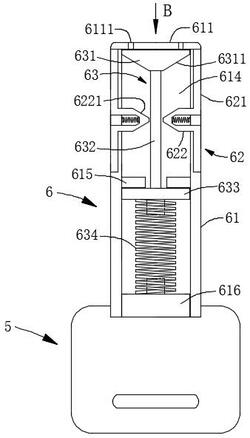所述的主弹簧(634)呈压缩状态一端顶紧在所述压板(633)背离连接杆(632)的一侧,另一端顶紧在所述壳体(61)端部的支撑块(616)上。