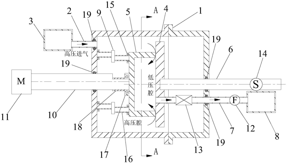 7.如权利要求1所述的一种无油涡旋压缩机的轴向动隙泄漏等效测试实验台,其特征在于,所述偏心主轴(10)、间隙调节杆(6)和泄漏排气管(7)伸出壳体(1)的位置均设置有油毡密封圈(19);进气管(2)与壳体(1)连接的位置设置有油毡密封圈(19)。
