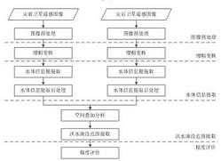 1)图像预处理:收集灾害前、后卫星遥感图像,根据实际情况,对洪水发生前、后卫星遥感图像进行辐射定标和大气校正,得到具有明确物理含义的反射率数据;