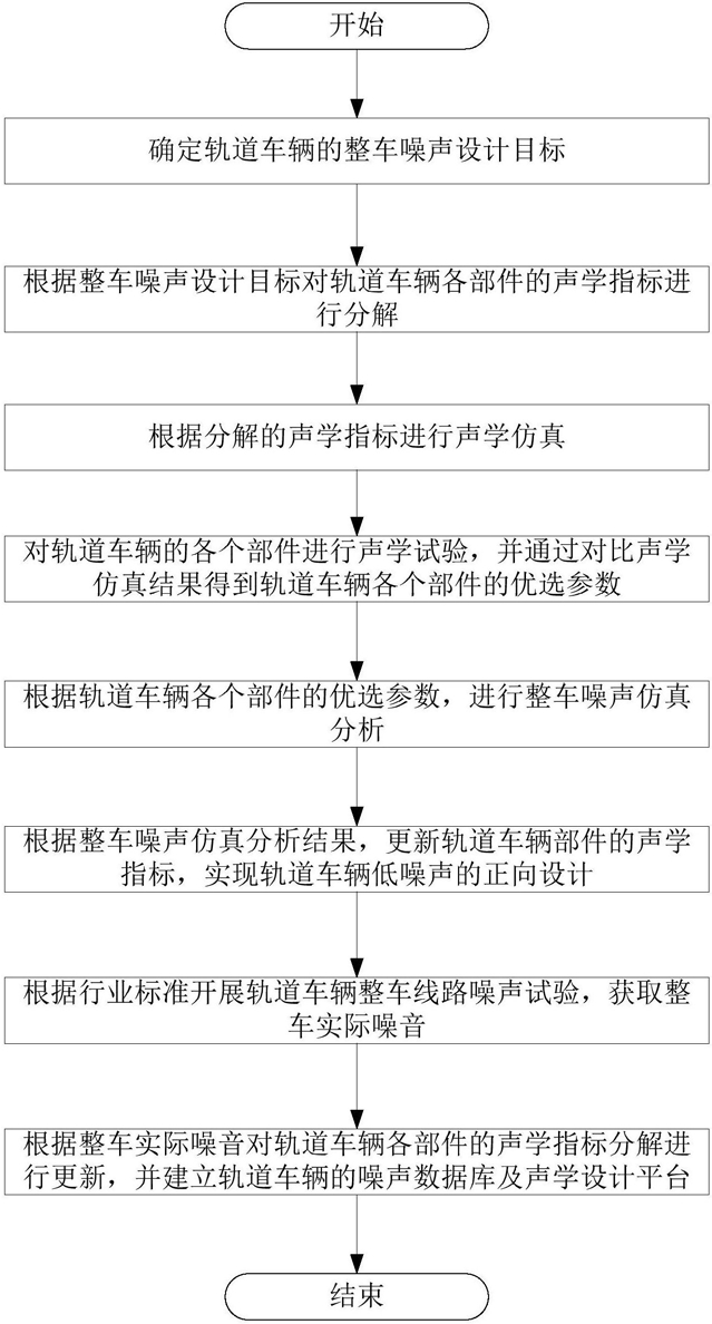 2.根据权利要求1所述的轨道车辆低噪声正向设计方法,其特征在于:在步骤S6之后还包括步骤:S7、根据行业标准开展轨道车辆整车线路噪声试验,获取整车实际噪音;