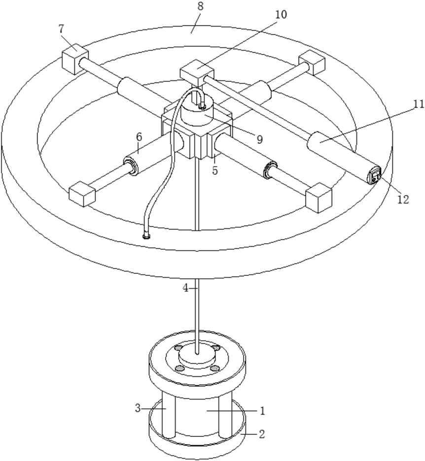 所述采样水罐的顶部设置有吊索,所述吊索的顶部设置有自动收线器,所述自动收线器的四周侧壁均设置有电控气压杆,所述电控气压杆远离自动收线器的一端设置有连接板,所述连接板的底部设置有气囊,所述自动收线器的顶部设置有输气泵,且输气泵的排气端通过导管与气囊的进气口相连通,所述输气泵的顶部设置有连接架,所述连接架的前侧壁设置有提手杆,所述提手杆的前侧壁设置有控制器;
