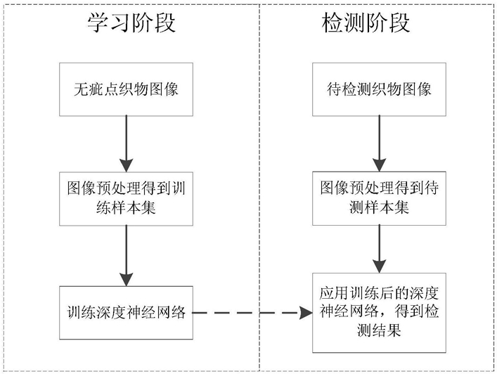 (2.2)将图像预处理得到的待测样本集中每一样本向量分别作为深度神经网络的输入,得到每幅待测图像块的网络输出,最终得到疵点检测结果。
