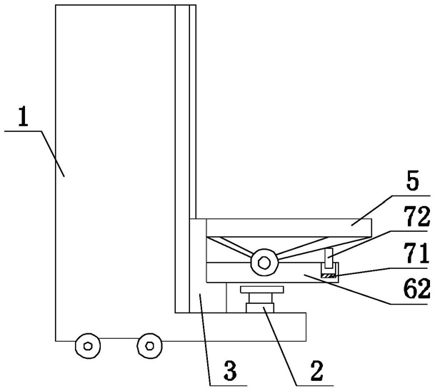 第二支撑部(62)上设有第二安装槽,第二安装槽位于第二转轴远离升降滑轨一侧,第二安装槽内设有第二电磁铁(71)和第二限位块(72),第二电磁铁(71)位于所述第二安装槽底部,第二限位块(72)位于第二电磁铁(71)上方,第二限位块(72)底部设有与第二电磁铁(71)磁性配合的第二铁磁部。