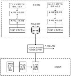 1.一种煤矿井下关键区域人员闯入监测方法,包括井下无线接入点、CSI信息接收器及井上监测服务器;所述井下无线接入点安装在所述井下关键区域内,所述CSI信息接收器采集所述井下无线接入点的CSI信息并通过井下无线网络传输至所述井上监测服务器;所述井上监测服务器对所述CSI信息进行处理,并与所述井上监测服务器内预设的无人和有人情况下的CSI信息处理结果进行比对,判断是否有人员闯入;