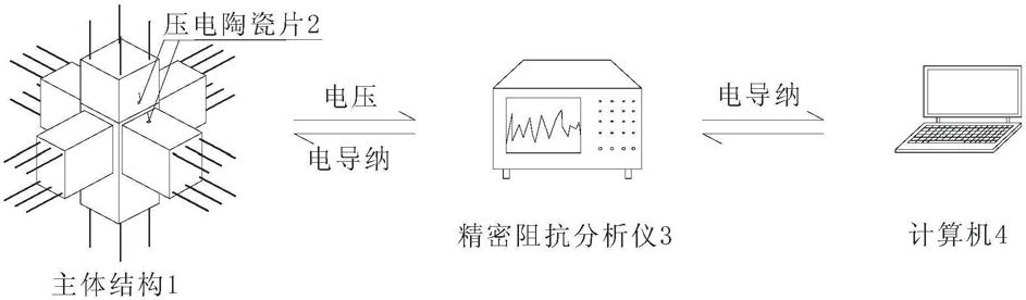 (3)电导纳信号采集:将预埋好压电陶瓷片的预制构件装载到施工现场吊装完毕后,将压电陶瓷片通过信号传输电缆与精密阻抗分析仪连接,然后精密阻抗分析仪向压电陶瓷片施加3KHz 500KHz不同高频电激励,同时精密阻抗分析仪接收压电陶瓷片反馈的电导纳信~号;分别采集每个压电陶瓷片灌浆前空套筒的电导纳信号和灌浆后套筒的电导纳信号;