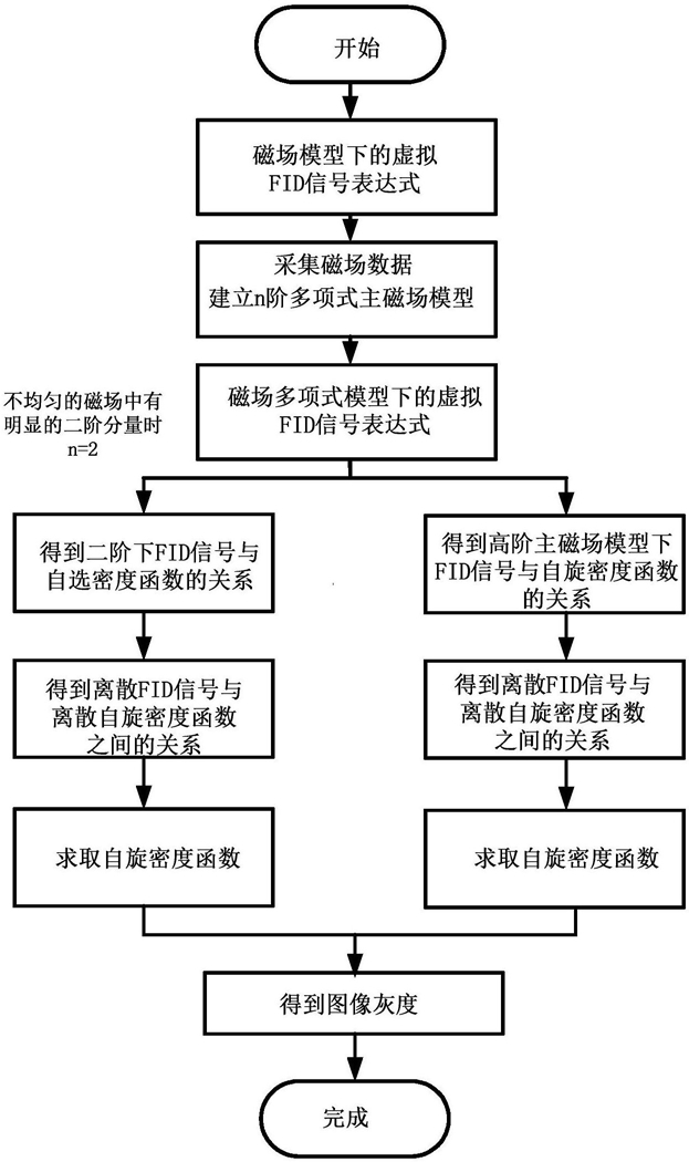 S2:采集磁场强度数据,通过测量成像物体上的磁场数据来拟合磁场的多项式模型,建立多项式主磁场模型:式(1)中,n为多项式的阶数,若测量的磁场中有明显的二阶分量,则取n=2;否则,取n>