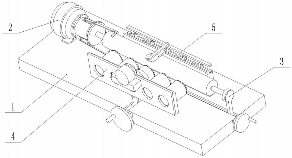 8.根据权利要求7所述的一种木质滚珠加工机,其特征在于:所述附板(4-2)上设置有多个排料通孔(4-2-1)和一个电机轴孔(4-2-2),多个排料通孔(4-2-1)分别与多个圆筒刀(4-4)同轴,所述切削电动机(4-5)的传动轴转动连接在电机轴孔(4-2-2)内。