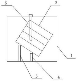1.一种包裹式不同层理角度人造岩心,其特征在于:这种包裹式不同层理角度人造岩心是由大岩心内包裹小岩心形成的真三轴水力压裂实验试件,小岩心(2)为具有多层层理面的岩心,两根长圆柱(3)和两根短圆柱(4)构成支架,支架被包裹在大岩心(1)内,支架中两根长圆柱(3)位于两根短圆柱(4)左侧,两根长圆柱(3)和两根短圆柱(4)的柱顶连线构成倾斜面,小岩心(2)倾斜设置于支架上,小岩心(2)的底面与所述倾斜面重合;压裂管(5)从大岩心(1)上表面插入到小岩心(2)中。