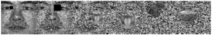 1.一种基于加权混合范数回归的鲁棒人脸识别方法,包括以下步骤:步骤a.为每个目标对象选取ni个样本作为训练集,确定字典矩阵X,输入测试人脸图像Y;具体包括下述内容:为每个目标对象选取ni个样本作为训练集,每个样本维数为m,其中i=1,…,c,c是目标m×n类别数,总训练样本量为 由此,确定字典矩阵X=[X1,X2,…,Xc]∈R ;余下的数据都作为测试集,将测试人脸图像表述为Y∈Ro×q,即宽度为q,高度为o,将之按列连接为向量形式y=Vec(Y)∈Rm,m=o×q,使y=Xa+e