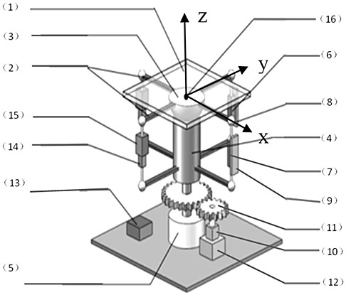 在状态空间方程中 ,三轴的控制输入分别为Ux ,Uy ,Uz,状态变量为,其中 为三轴转台三个轴所对应转过的角度;姿态角补偿装置是一个3输入6输出的复杂非线性系统,各转轴之间的控制和运动存在复杂耦合。