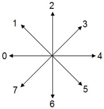 S32、梯度方向角度取值0~360°,对梯度方向进行8方向量化;