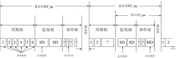 (3)进一步的,所述的周期调度表在构建时需要注意以下基本规则:通过特征周期来对周期数据进行分类,将具有相同特征的周期数据编成一个循环中的一组,组名为其基本周期的倍数,一个循环又分成由若干个基本周期组成的子循环;一个宏周期内的所有循环构成一个宏循环,且每个宏循环的最后一个偶发相专为主权的转移而保留,即使在此宏循环中并未用于主权的转移;
