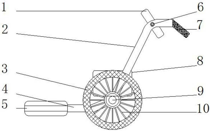 7.根据权利要求1所述的一种采煤沉陷区在重复开采条件下的地基变形测试系统,其特征在于:在主轴(9)上设置有与自行车相同的刹车系统,刹车系统的控制刹车把安装在推扶手(7)上。