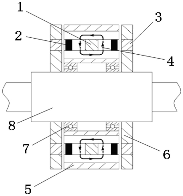 5.根据权利要求1所述的一种纯电动汽车用轴向磁通混合励磁开关磁阻电机,其特征是:Ns个工字型定子分块都固定嵌在同一个定子支架(5)的对应轴向通孔内,定子支架(5)通过轴承(7)支撑在转轴(8)上。