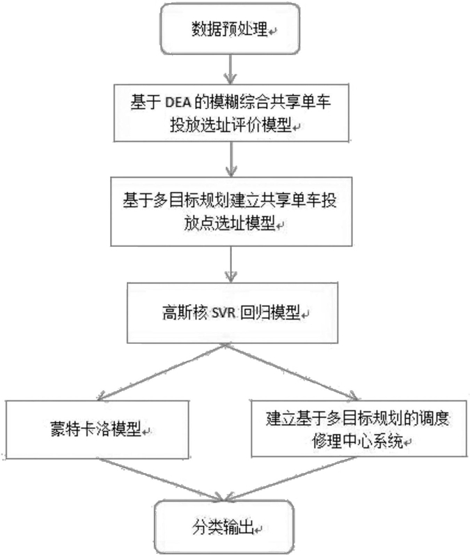 2.根据权利要求1所述的一种共享单车的管理与决策方法,其特征在于,所述步骤1)建立基于DEA的模糊综合共享单车投放选址评价模型具体包括步骤:首先对地区分类,按照自行车投放点指标选取原则,定义共享单车投放适宜的评价指标,再通过DEA算法,得到第k个DMU决策单元的效率评价指数,公式如下: