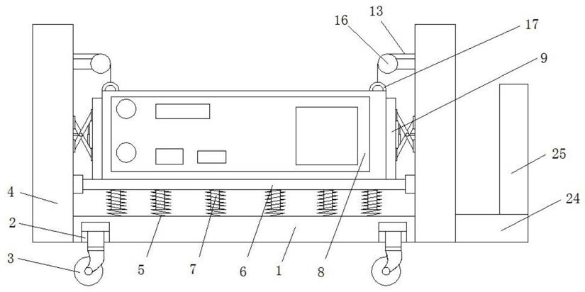 8.根据权利要求1所述的一种具备防碰撞功能的电气设备,其特征在于,所述支撑板(4)的底部一侧焊接有第一固定板(24),所述第一固定板(24)的顶部一侧焊接有把手(25),所述把手(25)的外侧固定套设有防滑橡胶螺纹套。