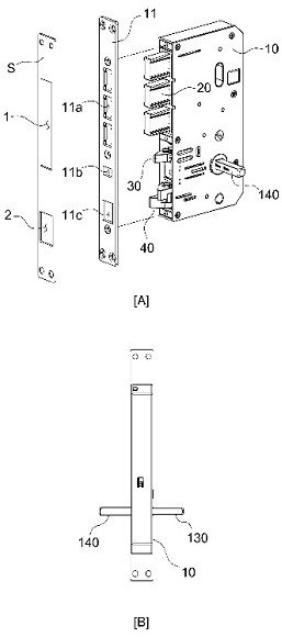 3.根据权利要求书2所述的一种具有门栓用无负荷控制器的插锁,其特点在于,所述从动齿轮与所述传感器齿轮的齿轮比为1:2,所述传感器齿轮包括在机体外部进行凸出的接触块,所述感应件包括感应是否物理方式接触所述接触块的微型开关,所述接触块接触所述微型开关的状态下,所述从动齿轮旋转半圈时,所述传感器齿轮会旋转一圈,同时,所述微型开关再次感应所述接触块,并将所述感应件的反转信号传递给所述马达。