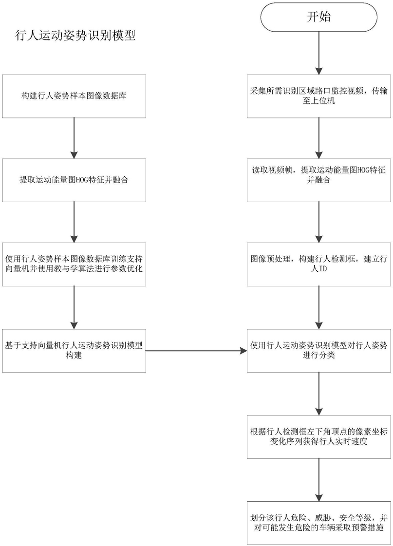4.根据权利要求1-3任一项所述的方法,其特征在于,根据行人的实时运动特征,对行车道路上的车辆进行行人行为级别预警;