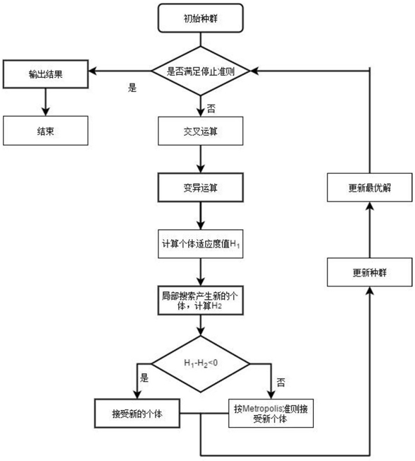 步骤1:全局搜索,计算种群输入对应的适应度函数Hi′;通过交叉和变异得到下一次迭代的种群结果;