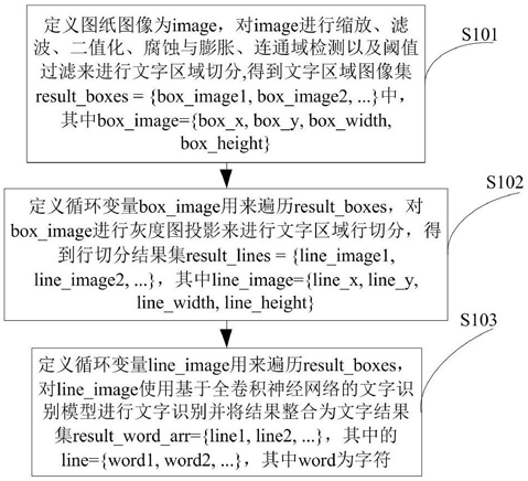 1.一种全卷积神经网络的图纸版面分析与文字识别方法,其特征在于,所述方法包括:(1)定义图纸图像为image,对image进行缩放、滤波、二值化、腐蚀与膨胀、连通域检测以及阈值过滤来进行文字区域切分,得到文字区域图像集result_boxes={box_image1,box_image2,...}中,其中box_image={box_x,box_y,box_width,box_height};