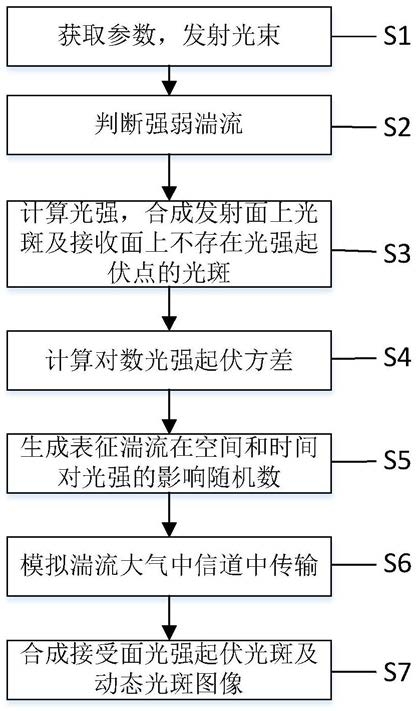 S7、根据获得的接收面上存在光强起伏的点在每个时刻的接收光强,合成得到接收面上的光强起伏点形成的光斑,并输出接收面上光强起伏点随时间变化的动态光斑以及输出接收端中光电检测器的输入光功率。