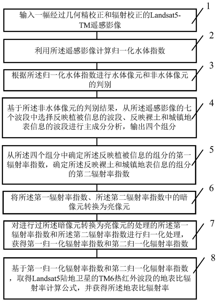 2.根据权利要求1所述的方法,其特征在于,所述输入一幅经过几何精校正和辐射校正的Landsat5-TM遥感影像的步骤中包括:所述Landsat5-TM遥感影像选取四级产品,其全部七个波段重采样至30米空间分辨率。