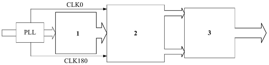 1.一种高效率的“细”时间测量的电路,包括锁相环和信号处理模块;其特征在于:还包括“细”时间计数模块和编码电路模块;所述的信号处理模块包括第一采集D触发器、第二采集D触发器、第一异或门、第二异或门、第三异或门、与门和大延迟选择器;所述第一采集D触发器的时钟端接锁相环的0°时钟输出端;所述第二采集D触发器的时钟端接锁相环的180°时钟输出端;第一异或门的第一输入端、第二输入端与第一采集D触发器的输入端、输出端分别相连;第二异或门的第一输入端、第二输入端与第二采集D触发器的输入端、输出端分别相连;第一异或门的输出端接与门的第一输入端、第三异或门的第一输入端及大延迟选择器的第一数据输入端;第二异或门的输出端接第三异或门的第二输入端及大延迟选择器的第二数据输入端;第三异或门的输出端接与门的第二输入端;与门的输出端接大延迟选择器的地址输入端;大延迟选择器的输出端即为信号处理模块的延迟信号输出端;