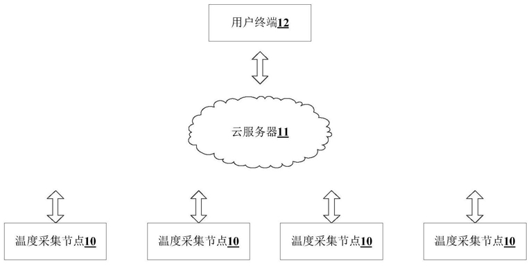 所述射频模块用于将所述温度传感器采集获取的数据发送至所述云服务器。