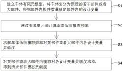 S4、对某零部件或整体部件内模态对设计变量灵敏度求和,得到所求部件模态贡献度,所述部件模态贡献度表示了车体某一部件对车体模态的影响程度的指标;