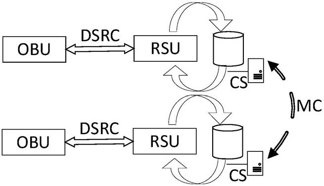 1)在智能网联交通系统中,通过DSRC技术自动识别行驶的车辆并获取相关数据,实现车载系统与路边单元的信息交互,其中,信息交互的步骤如下:步骤1.1:当行驶车辆进入定向天线所覆盖的范围内时,车载系统会与路边单元通过DSRC技术实现双向通信,使得双方能同时发送自身存储单元上的信息,其中,车载系统发送的信息包括车辆的当前速度、当前位置和时间戳,路边单元发送的信息包括其他车道上车辆的预测位置、位于哪个方向上、几车道和加速度;