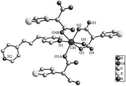 7.根据权利要求6所述的噻吩类功能配合物晶体材料,其特征在于,每1个DPP的2个氮N1和N2各连接一个Cd(II)离子。