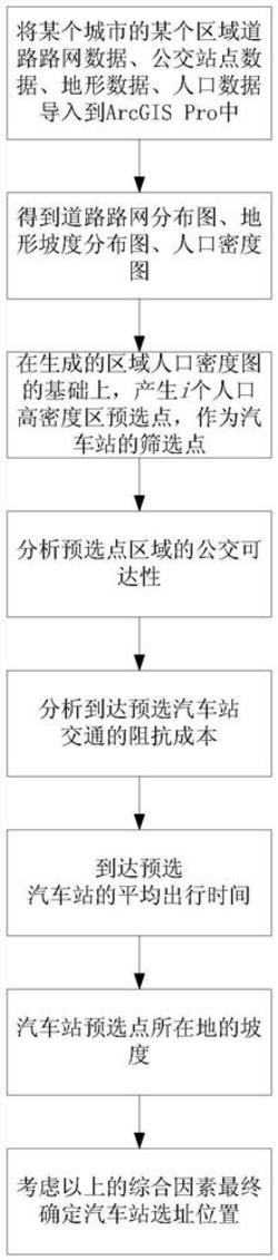1.一种基于GIS的汽车站选址方法,其特征在于:所述汽车站选址方法包括以下步骤: