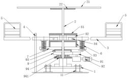 4.根据权利要求1所述的载人式旋转升降装置,其特征在于:所述中心轴的下端同轴设有转动连接的从动齿轮,与所述从动齿轮啮合设置的主动齿轮,所述主动齿轮通过电机驱动旋转,所述从动齿轮设在弹簧安装架的下端且二者之间设有垫圈,所述弹簧安装架通过所述垫圈与所述从动齿轮固定连接,所述垫圈为开口向下的U型,所述从动齿轮与底座之间设有压力轴承,所述压力轴承通过轴承座固设在所述底座上。