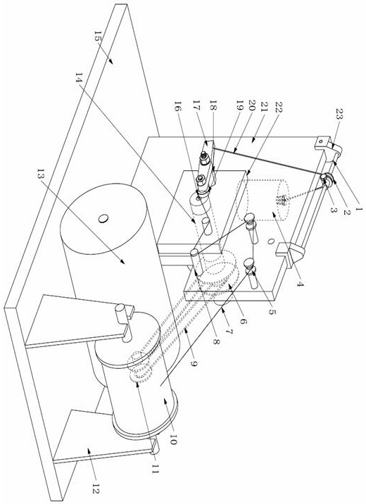 1.一种压力可调微小型金属螺旋卷成型装置,其特征在于,所述的压力可调微小型金属螺旋卷成型装置包括丝桶、成型机构、压力调整机构和装置主体,所述的丝桶、成型机构、压力调整机构均设于所述的装置主体上,所述的丝桶设于所述的成型机构一侧,所述的压力调整机构设于所述的成型机构上。