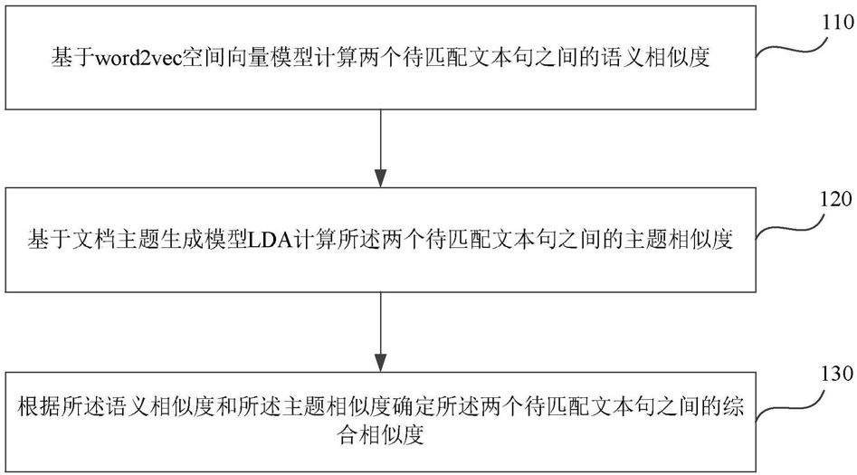 6.根据权利要求1所述的方法,其特征在于,在基于word2vec空间向量模型计算两个待匹配文本句之间的语义相似度之前,或者基于文档主题生成模型LDA计算所述两个待匹配文本句之间的主题相似度之前,所述方法还包括:对所述两个待匹配文本句进行分词处理。