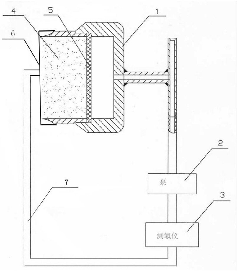 修整完成后,将取好样的环刀上端盖上滤膜,下端盖上密封盖;然后再通过螺纹连接环刀手柄组成土壤切割装置,土壤切割装置通过气路管道与测氡仪和气泵连接,组成一个闭环气路测量装置;