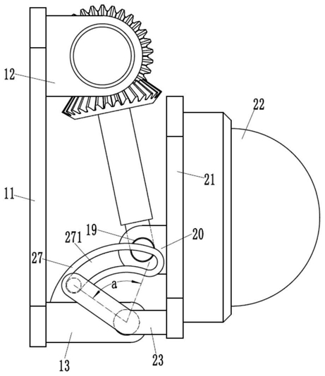 2.根据权利要求1所述的一种角度可调的监控设备,其特征在于:所述折弯板(23)远离翻转板(21)的一端固定有圆杆(26),所述铰接座(13)上固定有一对前后对称设置的圆弧板(27),圆弧板(27)上成型有圆弧槽(271),圆杆(26)插套在圆弧槽(271)内。