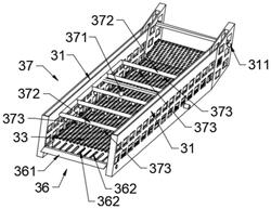 过滤栅,过滤栅采用弹性的橡胶材质制成,过滤栅包括缓冲板、多个栅条;缓冲板采用弹性橡胶板,缓冲板设置在两个安装板之间且位于传送带前方,缓冲板左右两端分别与两个安装板连接,多个栅条左右平行设置且前端固定在安装板后端;