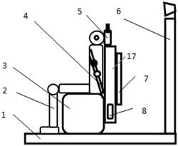 1.一种乘用车座椅声品质主动控制试验装置,所述的座椅安装在乘用车的地板(1)上且该座椅包括座椅本体(3)、靠背(17)和头枕(5),靠背(17)的前端设置有安全带(4),所述的座椅上放置有试验用假人(2),其特征在于:所述地板(1)的顶端沿竖直方向设置有支架(6)且支架位于靠背(17)的正后方,支架(6)的顶端安装有初级声源传声器(12),所述安全带(4)上设置有安全带扬声器(9)和安全带误差传声器(10),所述的头枕(5)在试验用假人(2)头部的正上方设置有头枕误差传声器(13),头枕(5)在试验用假人(2)耳部的两侧分别设置有右耳评价传声器(15)和左耳评价传声器(16),头枕(5)在右耳评价传声器(15)和左耳评价传声器(16)的外侧分别设置有头枕右扬声器(14)和头枕左扬声器(11),所述靠背(17)的后端或座椅本体(3)的底部设置有声品质座椅控制器(7);
