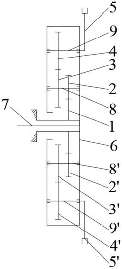 4.根据权利要求1所述的一种大摆幅二阶非圆齿轮行星轮系移栽机构,其特征在于:所述行星架的转角为0~180°与180~360°的过程中,移栽轨迹是对称的;根据第一取苗臂或第二取苗臂取苗时姿态就能确定出投苗时姿态。